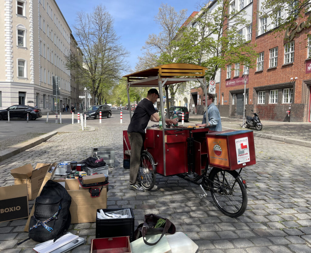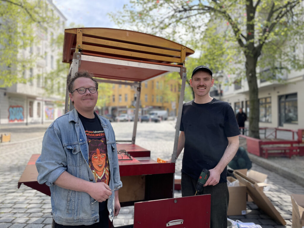 Christian wohnt im Antonkiez, Klee ist seit vielen Jahren aktiv im Quartier. Gemeinsam haben die beiden sich zusammengefunden um die mobile Küche wieder zurück auf die Straßen bringen. Unterstützt wurden sie dabei durch den Aktionsfonds des Quartiersmanagements: Mit 1.500 Euro konnten erste Anschaffungen für den Umbau finanziert werden. Den Umbau zum Gemüsetransformator 2.0 übernehmen die beiden ehrenamtlich.