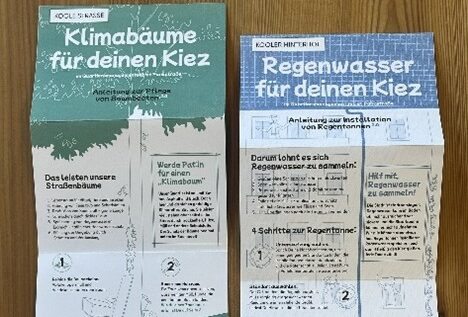 Wer selbst aktiv werden möchte, findet in unserem Maßnahmenkatalog viele Ideen für eigene Klimaanpassungsprojekte. Die praktischen Anleitungen zum Selberbauen von Regentonnen und Baumbeeten wurden außerdem aktualisiert – sie bieten einfache Schritt-für-Schritt-Hilfen für alle, die ihren Kiez weiterhin „kool“ gestalten möchten. Alle Materialien könnt ihr hier herunterladen und einige Exemplare sind auch noch im QM-Büro kostenlos erhältlich.