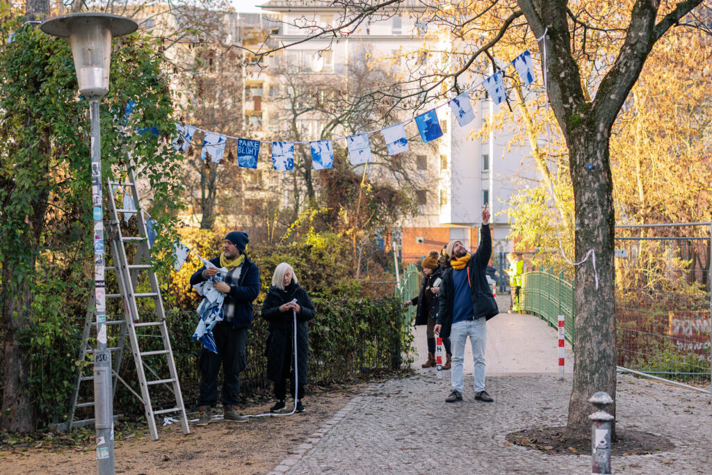 Den Abschluss der Aktion bildete am Freitag, den 12 Dezember, das gemeinsame Aufhängen der Fahnen entlang der Panke auf Höhe der Bibliothek am Luisenbad. Der Flussabschnitt wurde dadurch sichtbar verschönert und als öffentlicher Aufenthaltsort gestärkt.