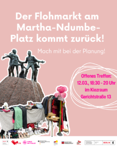 Es geht weiter mit der Planung des Nachbarschaftsflohmarkts auf dem Martha-Ndumbe-Platz am: