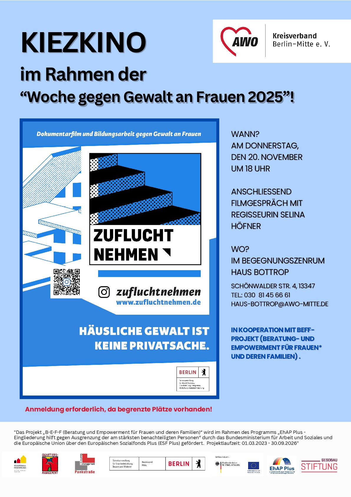 Im Rahmen der „Woche gegen Gewalt an Frauen 2025“ wird der Film „Zuflucht nehmen“ gezeigt.